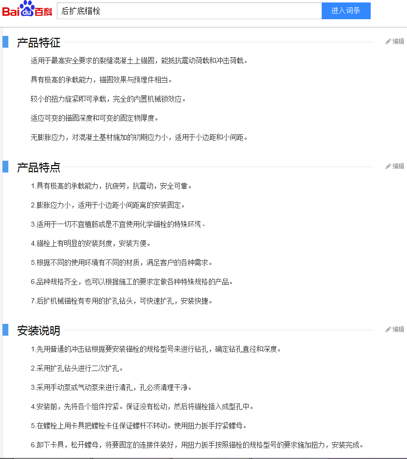 不锈钢后扩底锚栓
